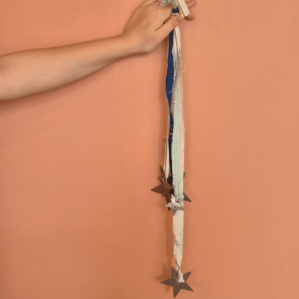 Ravissante guirlande d’étoiles en métal et tissu. Elle ornera vos murs pour une touche poétique à votre décoration.