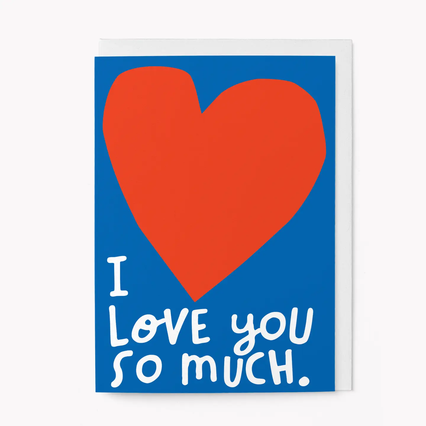 Exprimez vos sentiments avec cette carte au design simple et touchant. Sur un fond bleu apaisant, un cœur rouge éclatant attire immédiatement le regard, symbolisant l’amour et la passion. Le texte en blanc lumineux “I LOVE YOU SO MUCH” se détache avec élégance, transmettant un message clair et sincère. Parfaite pour surprendre un être cher, cette carte est un moyen chaleureux et visuel de dire “je t’aime” avec style et authenticité.