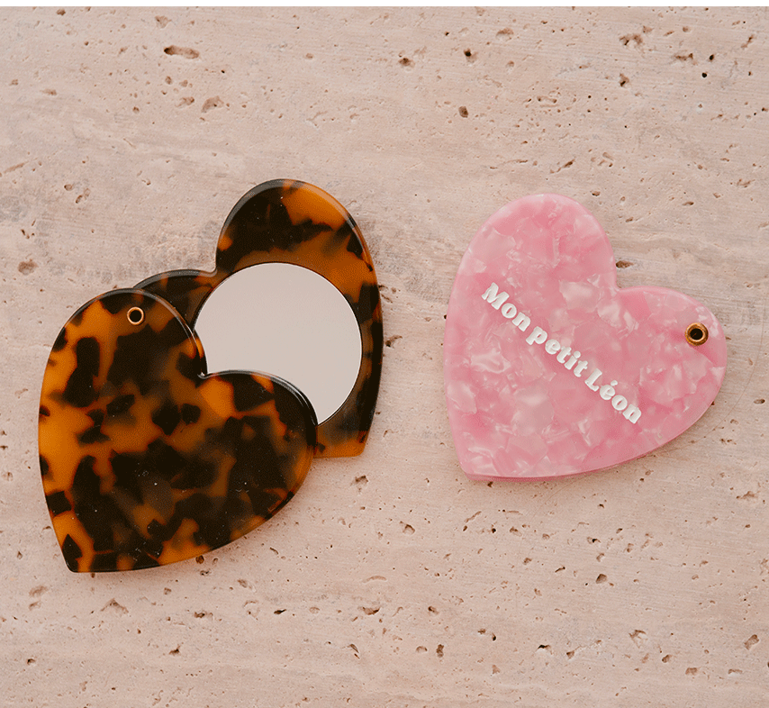 Miroir cœur Edition limitée en écailles rose ou léopard.