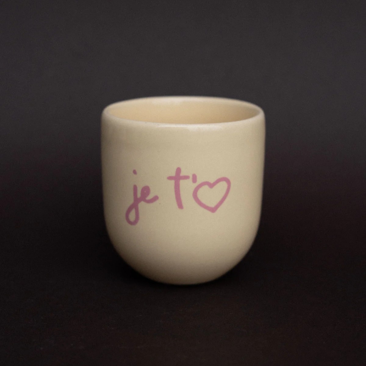 Notre première et unique tasse à café « Je t’aime » a toujours été notre préférée et maintenant, en jaune beurre, elle est encore plus jolie.​