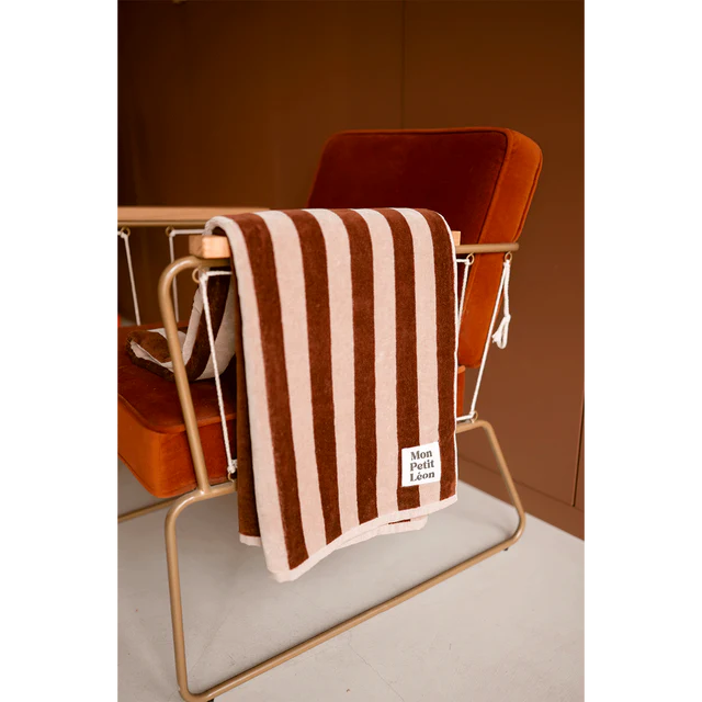 Une serviette de bain toute douce et mixte, avec ses belles rayures marrons et beiges, c’est LE produit à offrir ou à s’offrir pour (se) faire plaisir.